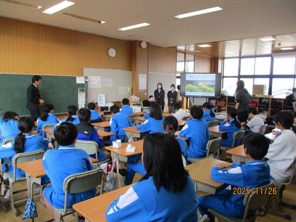 認知症とはどんな病気なのか、認知症になると現れる症状や正しい接し方について講話をしました。またDVDを観てもらって認知症の方にどんな声のかけ方をすればいいのか、グループで話し合い、発表してもらいました。児童の皆さんは、最後まで集中して聴いてくれました。