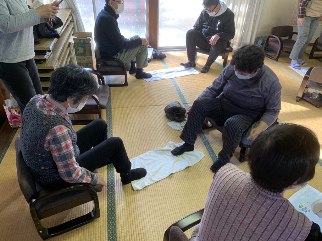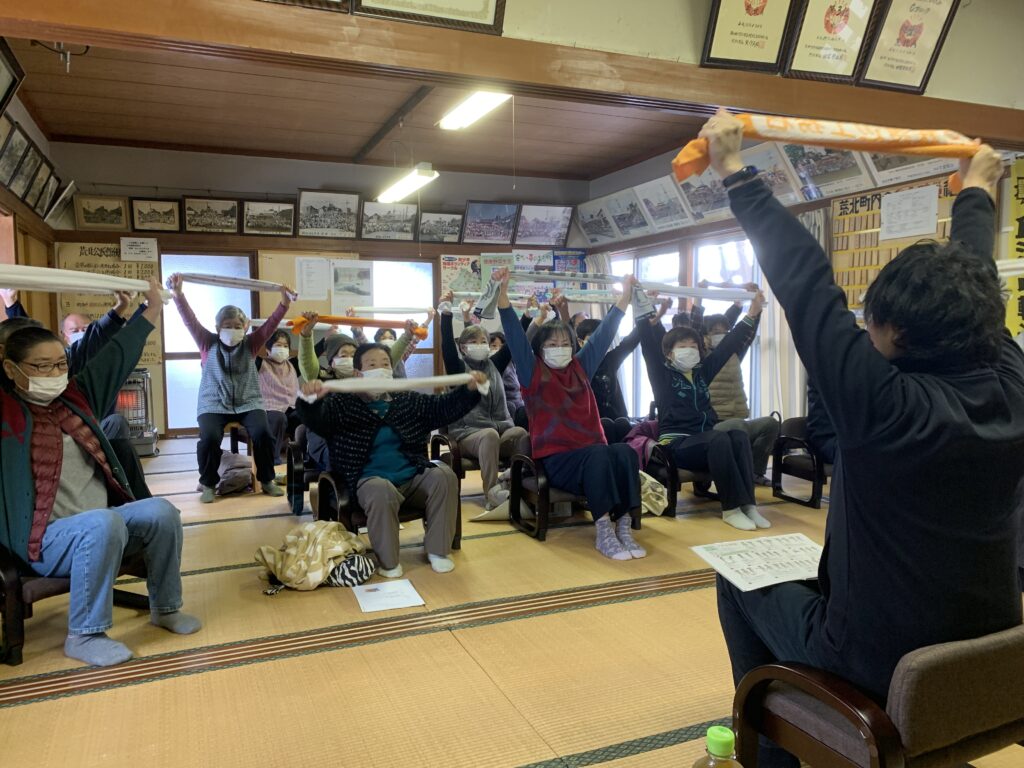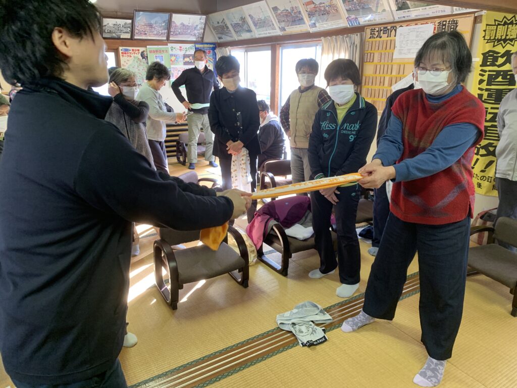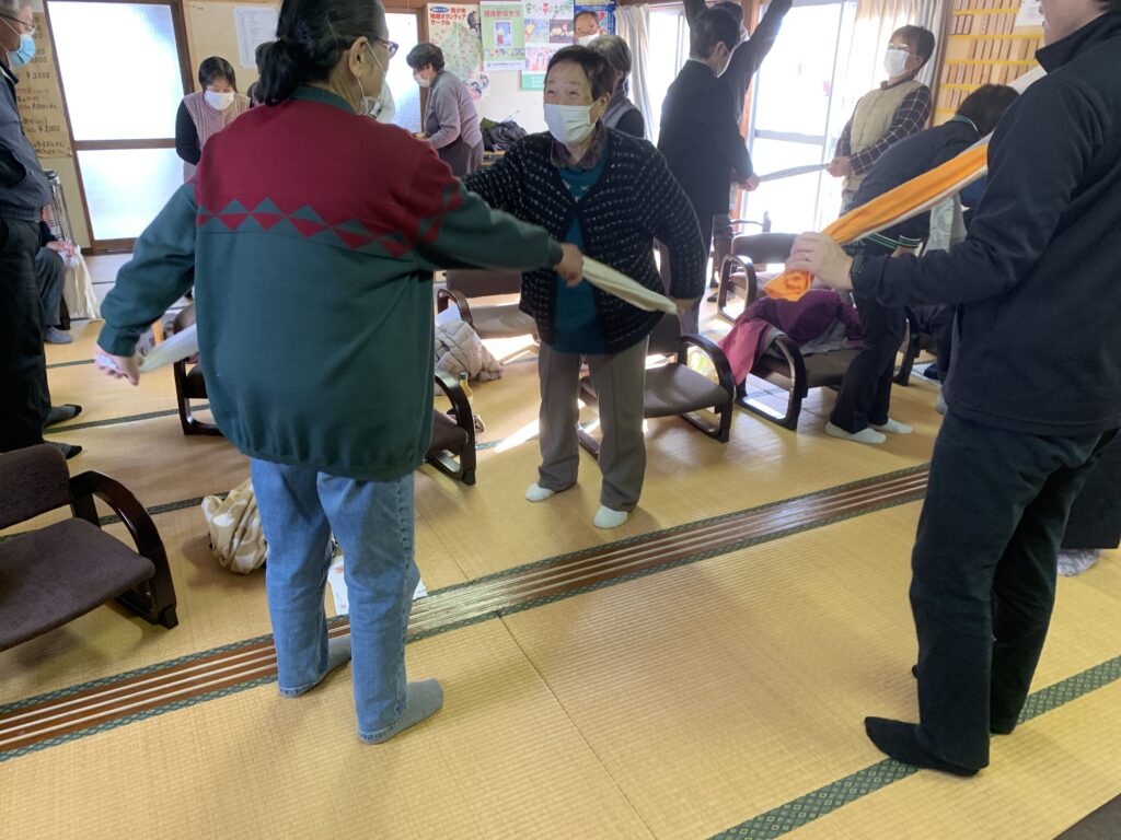 自宅で一人でもできる簡単な運動から、二人一組でタオルを使った楽しい体操まで、みんなでワイワイ体を動かしました