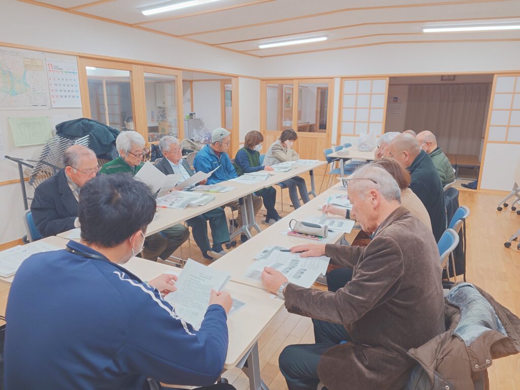 区長、民生委員、福祉推進員といった岩木地区の福祉関係者が出席され、社会福祉協議会のこと、福祉推進員のこと、緊急通報システムのこと等、地域福祉についてお話させていただきました。