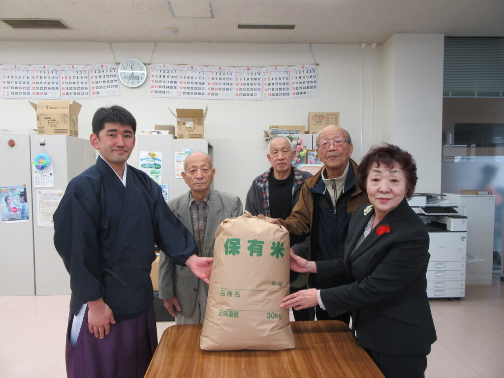 歳末たすけあいを目的として、巴会様より今年栽培したお米30キロをいただきました。